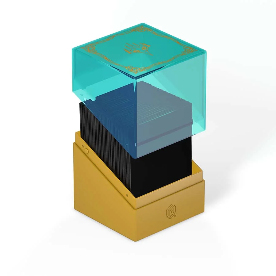 The Boulder 100+ is a durable and rigid deck box with a secure closure that can hold up to 100 double-sleeved or 120 single-sleeved cards in Ultimate Guard Sleeves. Both the completely transparent top of the Boulder and the solid bottom part are printed with officially licensed art from Magic: The Gathering's upcoming set "Lorwyn Eclipsed".